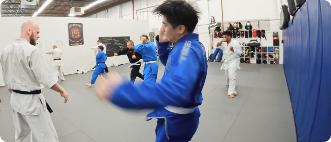 Sensei Jim is a highly approachable, patient and intelligent teacher who creates a physically and socially safe, ego-free and exciting learning environment; His teaching style helps develop martial arts IQ while also allowing the student to develop their own personal expression and style.